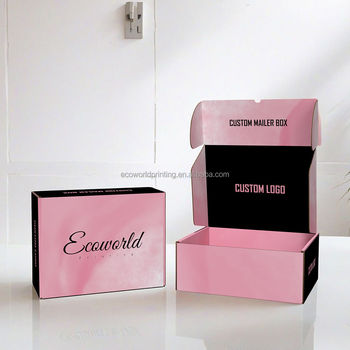 Özel Logo baskı pembe oluklu karton peruk ambalaj kargo kağıt posta mailler kutuları ile başparmak delik
