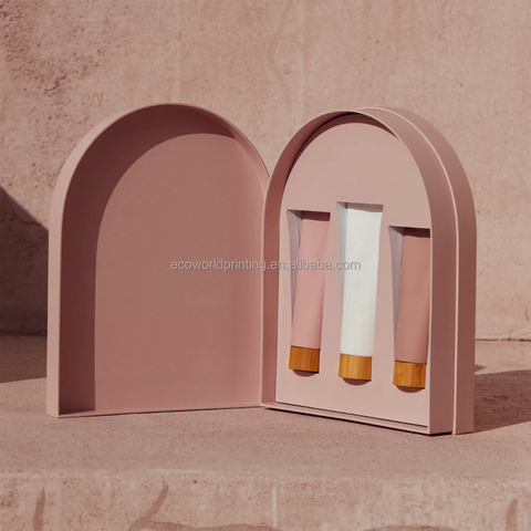 Logotipo personalizado Tamanho Design Único Arco Forma Caixas De Papelão Cosméticos Maquiagem Embalagem Caixa