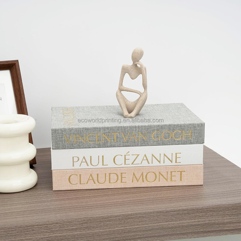 Atacado Personalizado Impressão Conjunto de 3 Faux Storage Box Linen Coffee Table Livros Decorativos para Home Decor