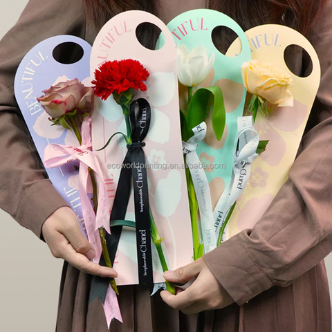 Design personalizado Bonito Papelão Flor Envoltório Único Floral Embalagem Saco De Papel com Alça De Recorte